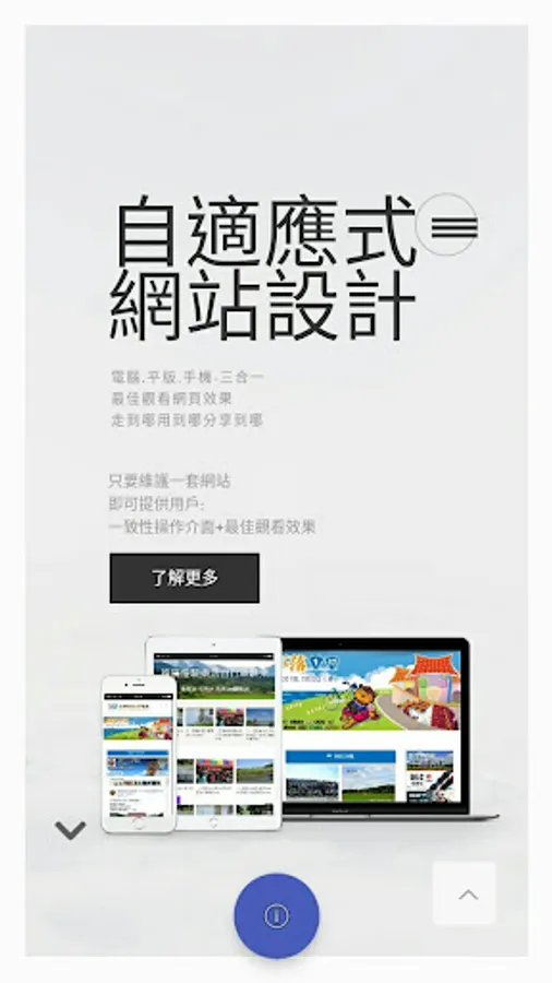 自適應網頁設計使用 HTML5 + CSS3 最新的技術去製作,去解決目前行動裝置多種螢幕尺寸呈現問題。