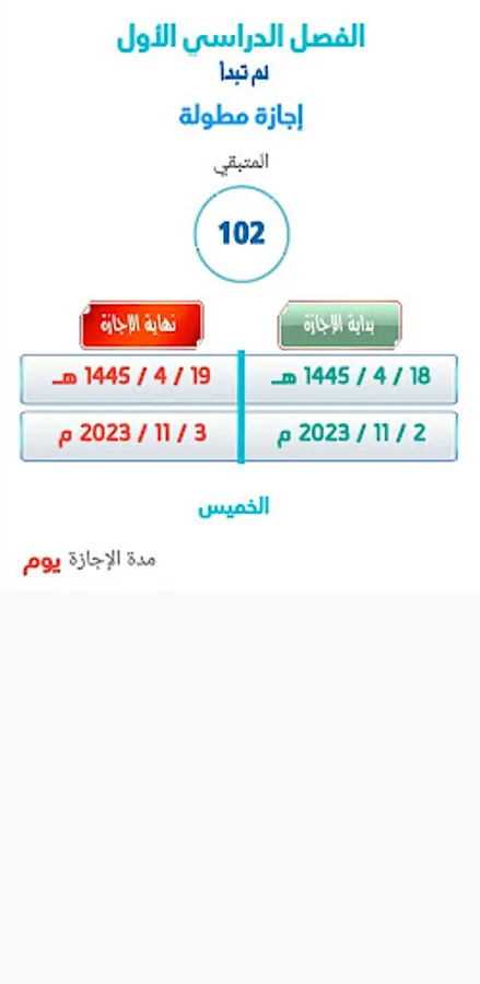 National Day - extended leave - end of semester - foundation day - Eid al-Fitr leave - end of the year