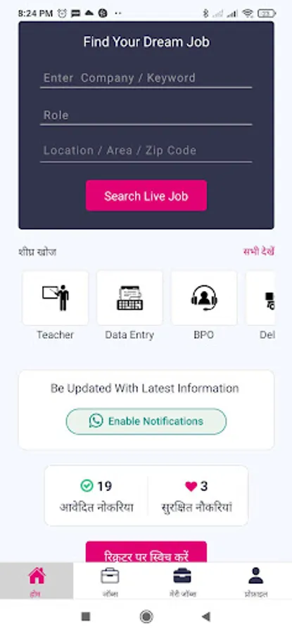 🔍 Job seekers can easily search for job listings in their preferred category & area, and apply with couple of taps.