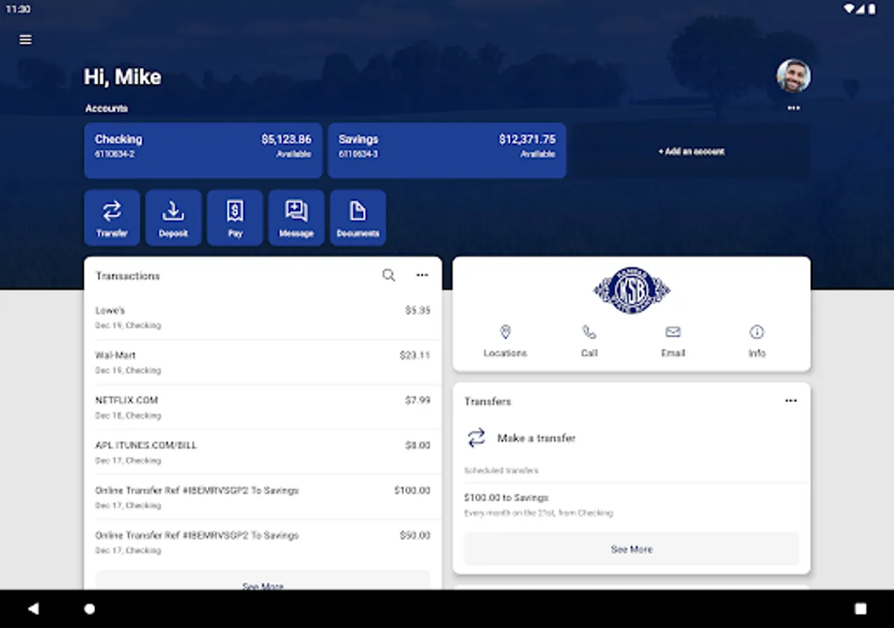 Mobile banking from Kansas State Bank offers a secure and easy way to bank anywhere any time you have access to the web. Check balances, pay bills, transfer money or locate a bank branch or ATM. Our mobile app is free, fast and convenient. Features: (You must be a current KSB Online Banking Customer)