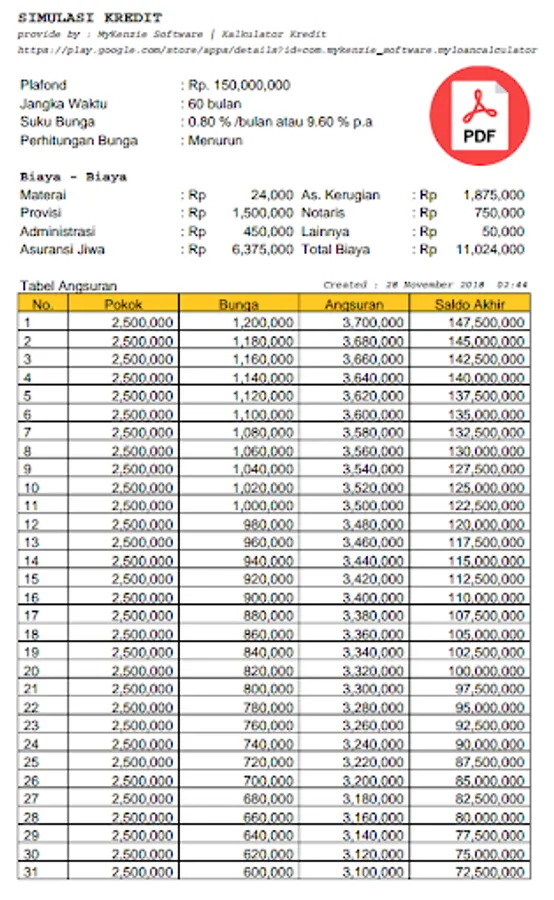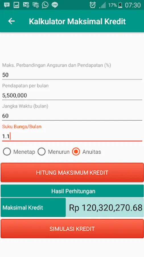 In addition, loan calculator can be used to calculate the maximum loan limit or loan that can be granted.