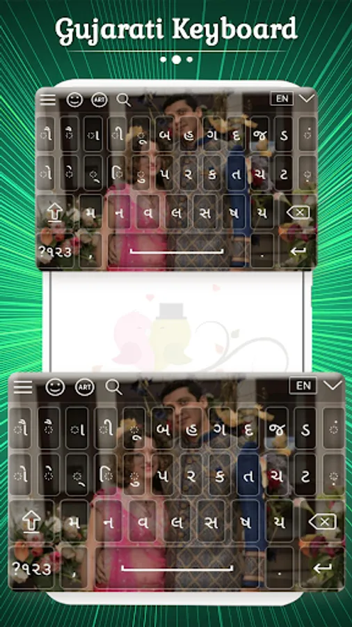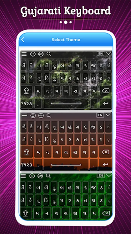 Gujarati Keyboard allows you to type in Gujarati Keyboard language. You can compose emails, post on social network and write some one messages through Gujarati Keyboard Keypad.