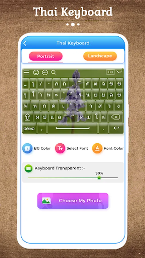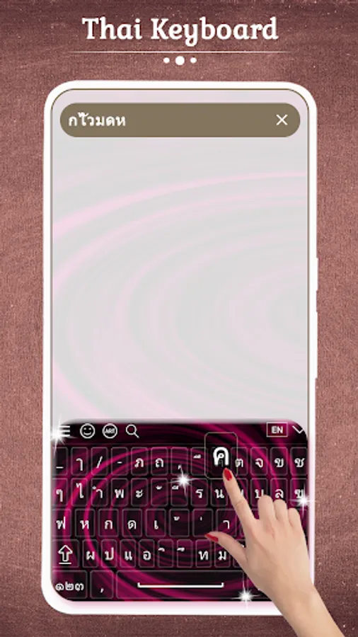 Thai Keyboard allows you to type in Thai language. You can compose emails, post on social network and write some one messages through Thai Keypad.