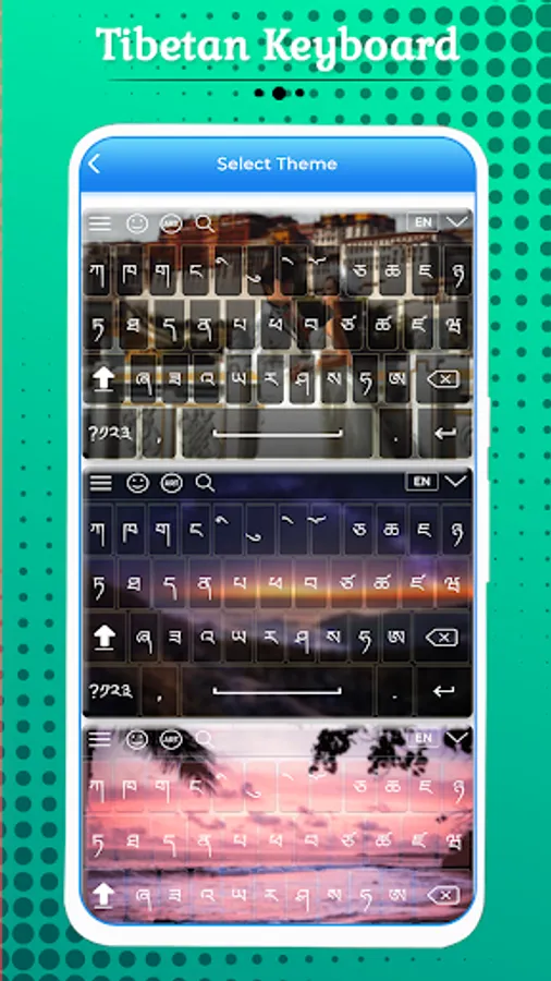 Tibetan Keyboard allows you to type in Tibetan language. You can compose emails, post on social network and write some one messages through Tibetan Keypad.