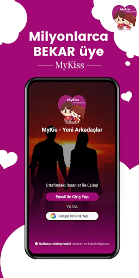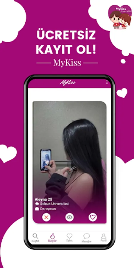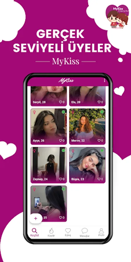 Millions of single girls and single men in Turkey have trouble meeting, chatting and finding friends. Thanks to MyKiss, we're here to solve your finding friends problem. Apart from the chat feature in the MyKiss application, your trust will not be destroyed thanks to Voice Chat and Video Chat. With the smart friend search designed with the latest technology methods, we recommend our members to the members whose characters can find the closest and most serious marriage. Meet with the best dating app among dating, dating and chat sites!