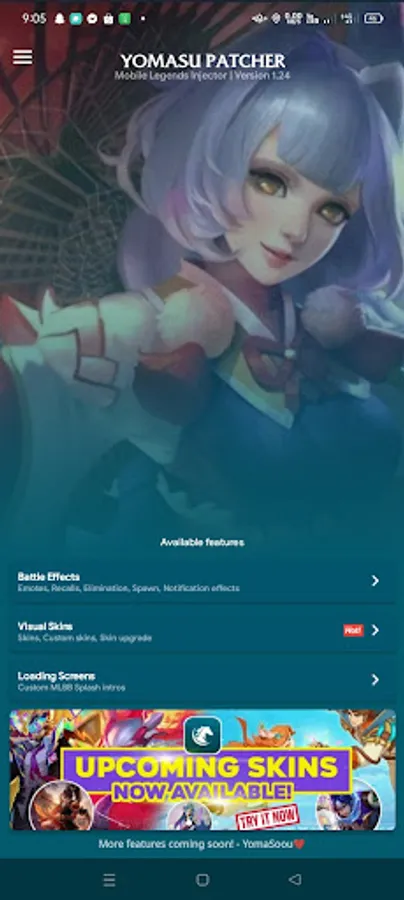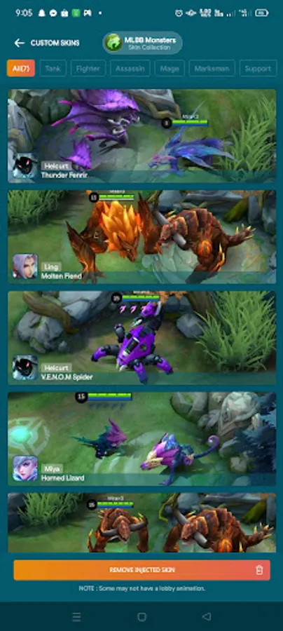 Use this app if you want to try out skins before buying them officially. Customized skins from various of creators that can not be bought in the game are also available as well as battle effects.