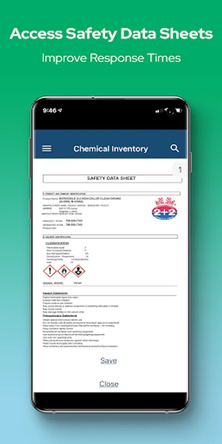 • Review chemical and SDS inventories, and access SDSs on the fly.