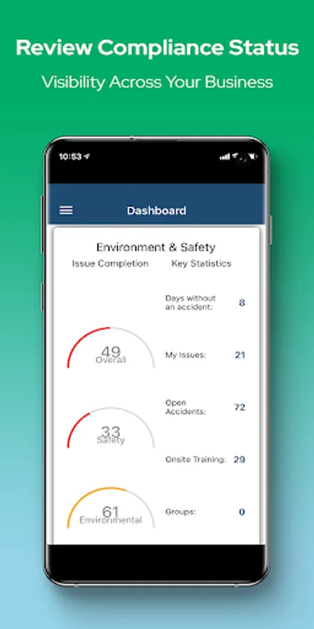 The Vera Suite Mobile App gives you access to key EHS and Sales F&I Compliance features in Vera Suite from your Android phone. This lets you easily record and track incidents, conduct self-inspections, and follow up on corrective and preventive actions. This helps you remain compliant and lets you continually track your progress.