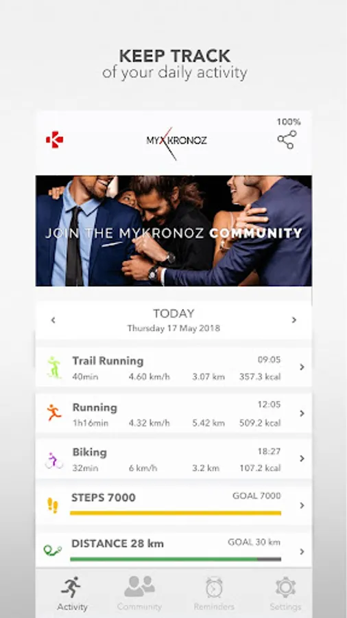 Powered with a multisport functionality, ZeSport2 let you select different activity type to precisely follow your performance (running, biking, walking, hiking, trail run, swimming).