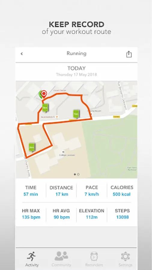 - Built-in GPS: Check your workout route while exercising and keep record of your workouts data (distance, pace and routes)
