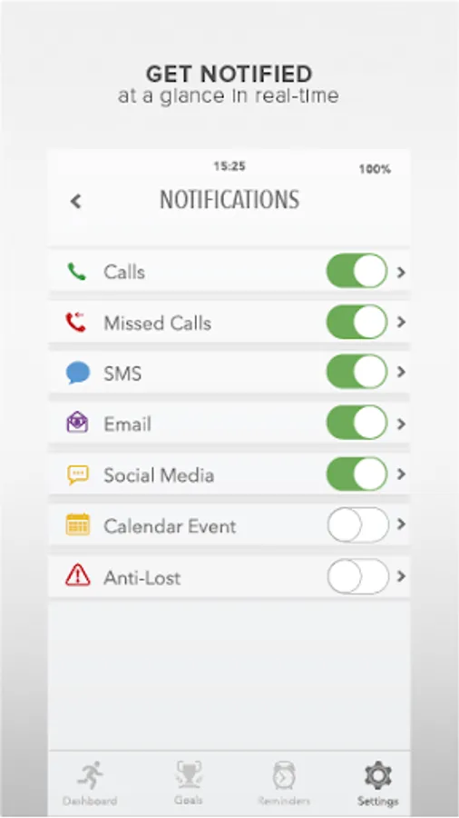- Select notifications of your choice (Incoming calls, SMS, emails, calendar events, social networks)