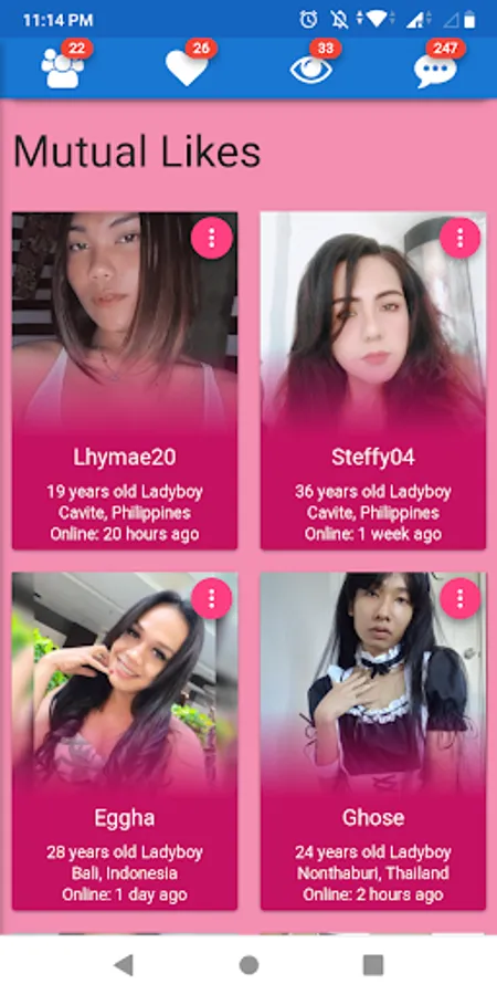 This is a 100% free dating app for trans or ladyboys as they are commonly known in south east Asia.