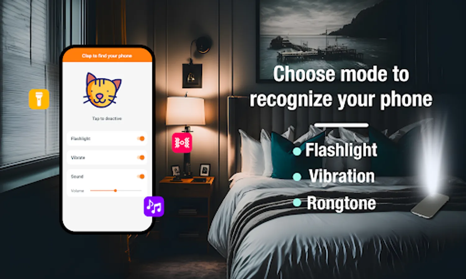 👏 Just turn on the app and it will detect the clapping sound or whistle sound when you can't find your phone and the app will react to the sound and start ringing, flash or vibrate.