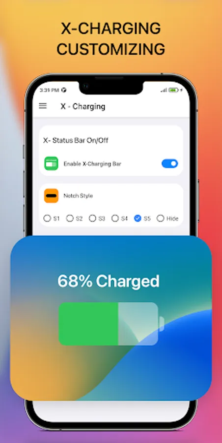 * Custom your status bar in charging screen like iOS 16 style in few step, no root needed, simple and easy to use, turn it on or off, make you phone look like iOS Style