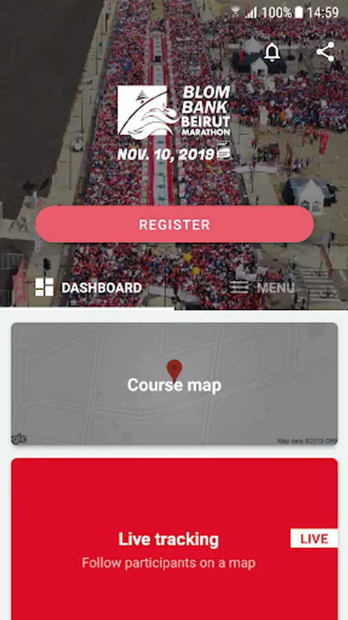 The BLOM Bank Beirut Marathon 2019 mobile app is the most complete app for the ultimate event experience. It features live tracking of all participants (without using their phones), social media integration, interactive course maps, selfies and all information you need to know about the BLOM Bank Beirut Marathon 2019.