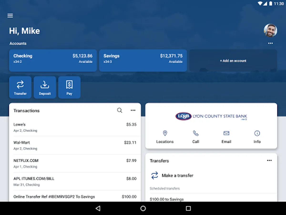 To use theLyon County State Bank Mobile App, you must be enrolled as an Lyon County State Bank internet Banking user. If you currently use our Internet Banking, simply download the app, launch it, and login with the same Internet Banking credentials. After you successfully login to the app, your accounts and transactions will begin updating.