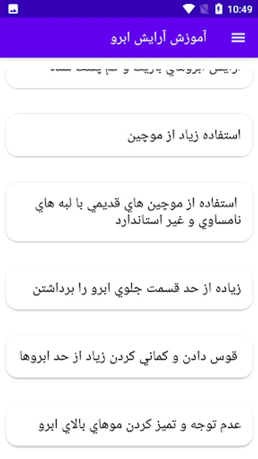 در این برنامه ما آموزش های لازم را جهت یادگیری آرایش صحیح ابرو را برای شما آماده کردیم تا در این زمینه مشکلی نداشته باشید.