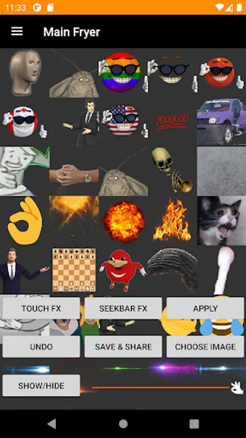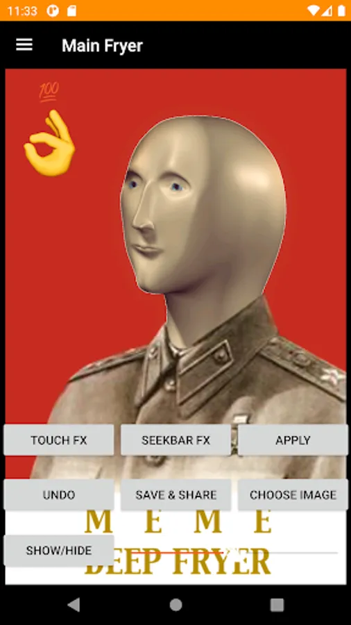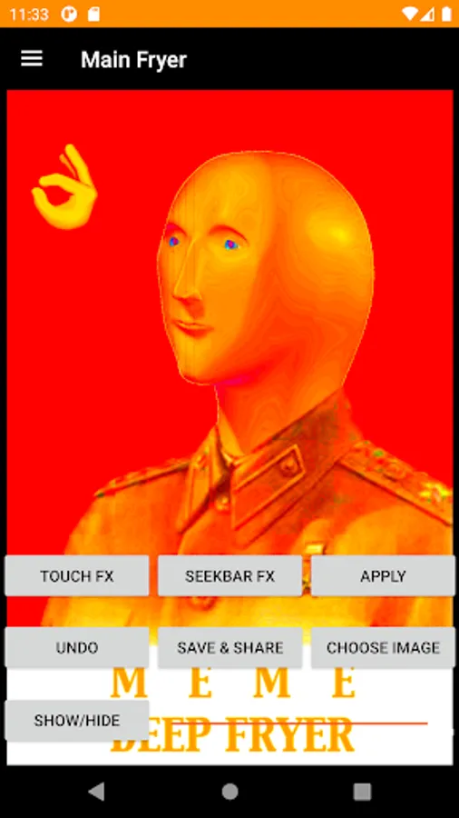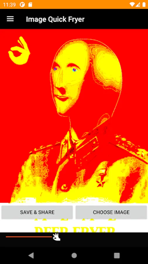 Use the seek bar to resize effects on your deep fried memes.
