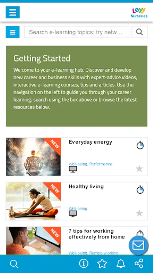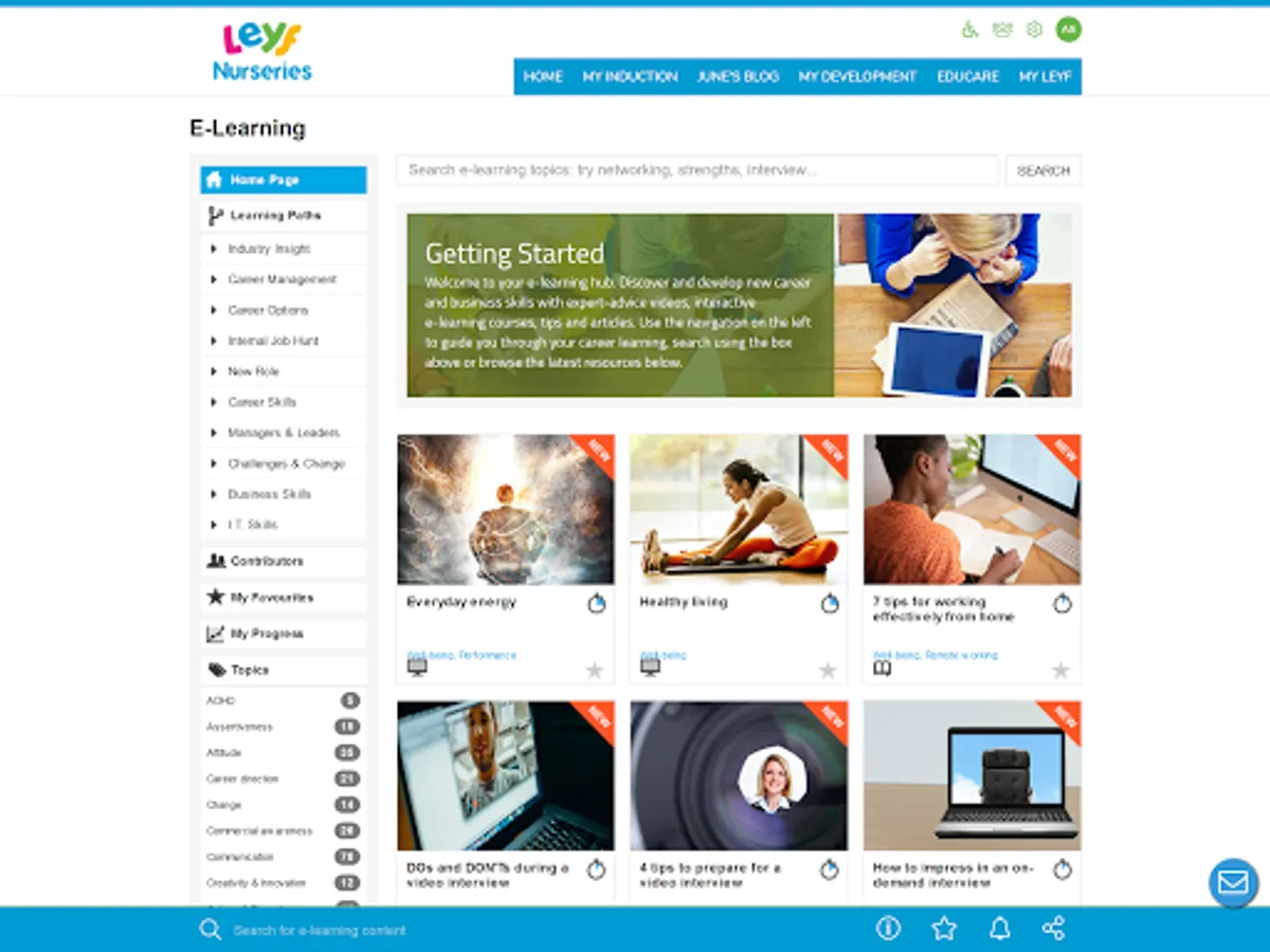 Get 1-click access to all your LEYF tools and e-learning resources as well as access to polices and practices in LEYF. Take career assessments, prepare for a career conversation, get expert video advice, or run a topic search on the go.
