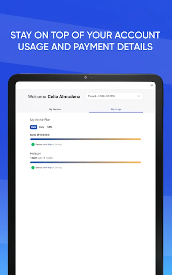 • Instantly check the data, call, and SMS usage of your mobile services to keep track of your plan.