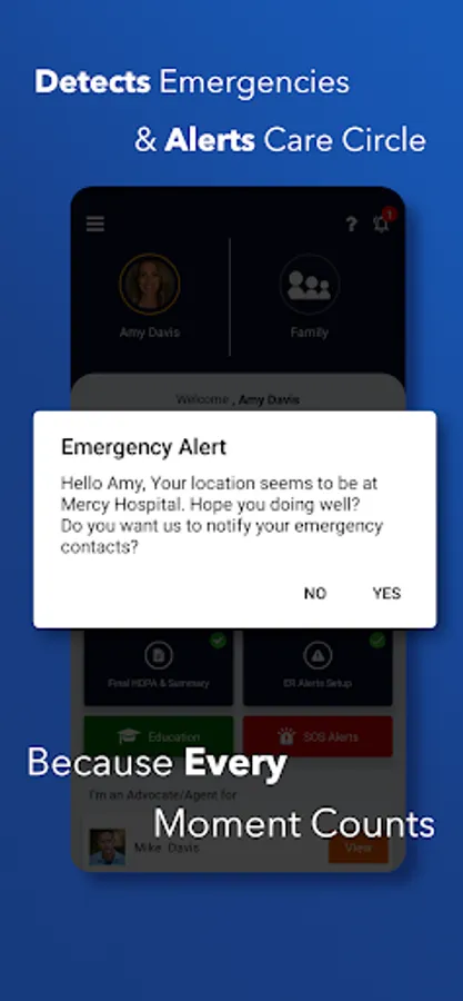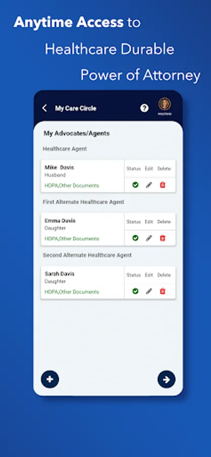 Automatically creates a state-specific legal digital HDPA (Healthcare Durable Power of Attorney) that is immediately available to their Care Circle and ER staff in an emergency.