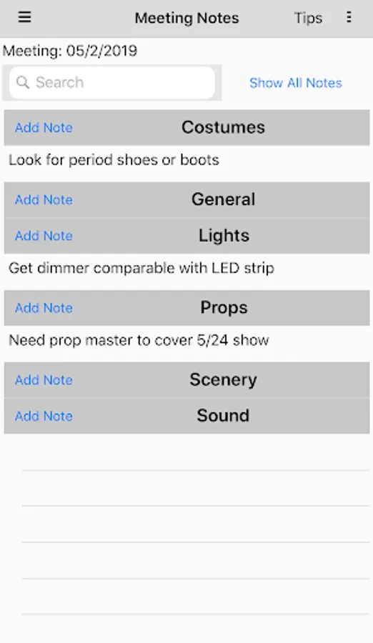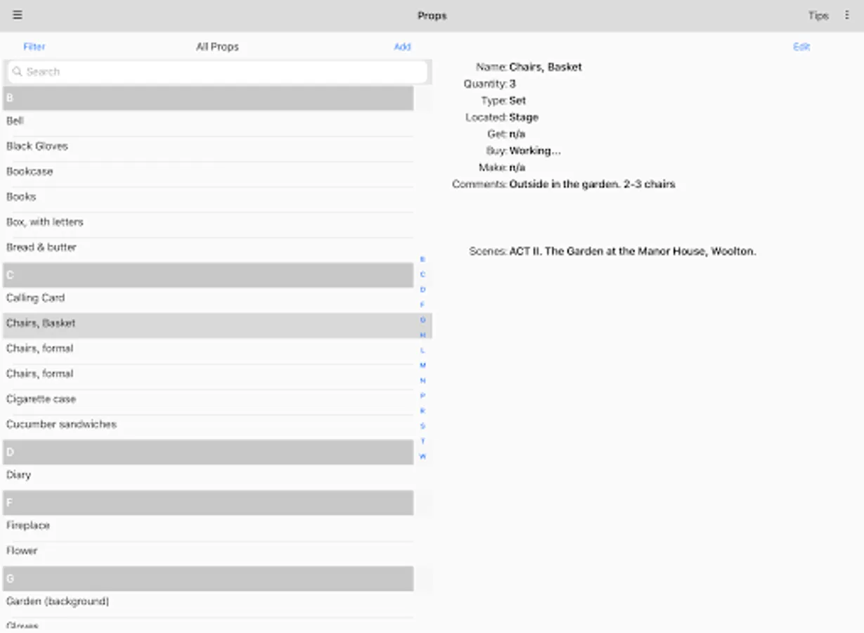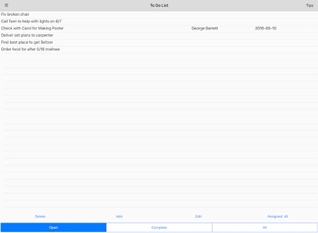 • Generate property lists, costume lists, equipment lists, to do lists.