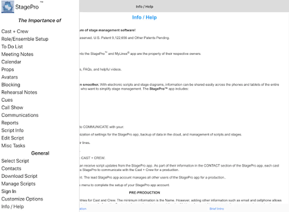 The StagePro™ system is available both as an app and as a website to make every production run smoother. With electronic scripts and stage diagrams, information can be shared easily across the phones, tablets and laptops of the entire production team! The StagePro™ app is for people who want to simplify stage management.