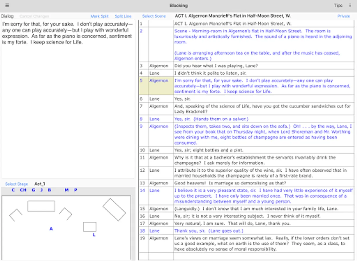 • Blocking Tools - add blocking directions directly into the script and then share a printed or electronic version with the entire production team.