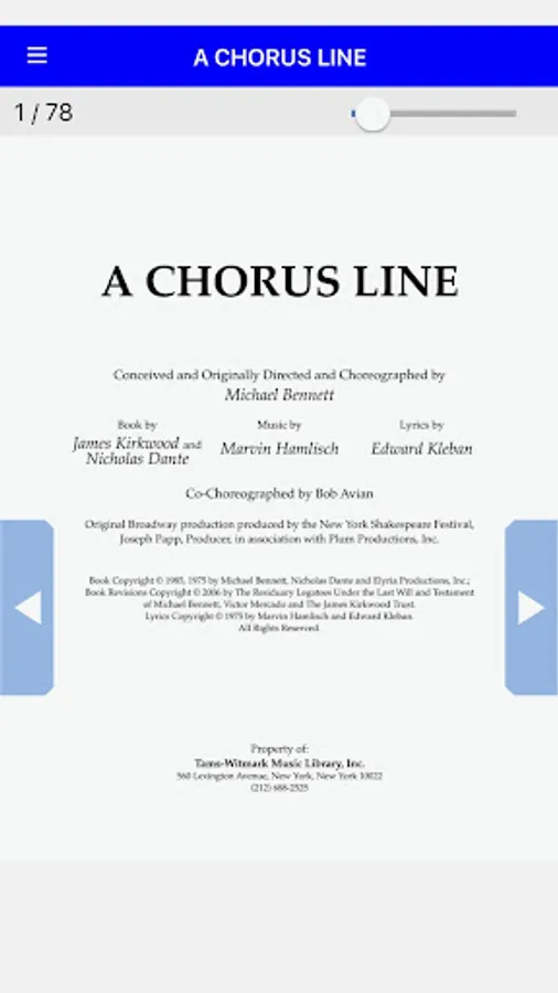 Preview a digital script of any musical (or all the musicals!) in our extensive musical theatre library. Then use the e-scripts app to read the scripts on your android phone or tablet
