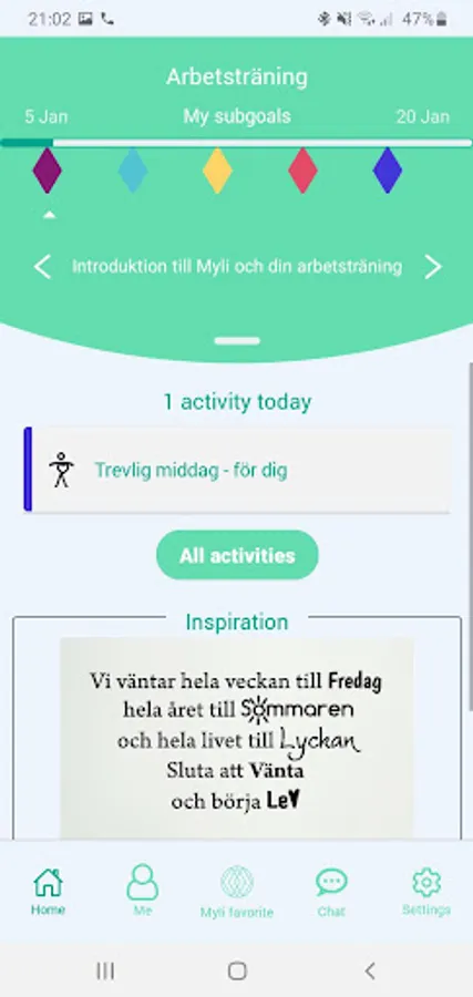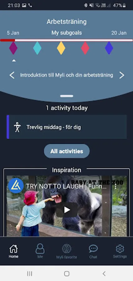 An individualized program including goals and activities is defined together with your coach. You can reflect on your goals and create your own checklists in addition to the program. Chat with your coach when you need advice or extra support.