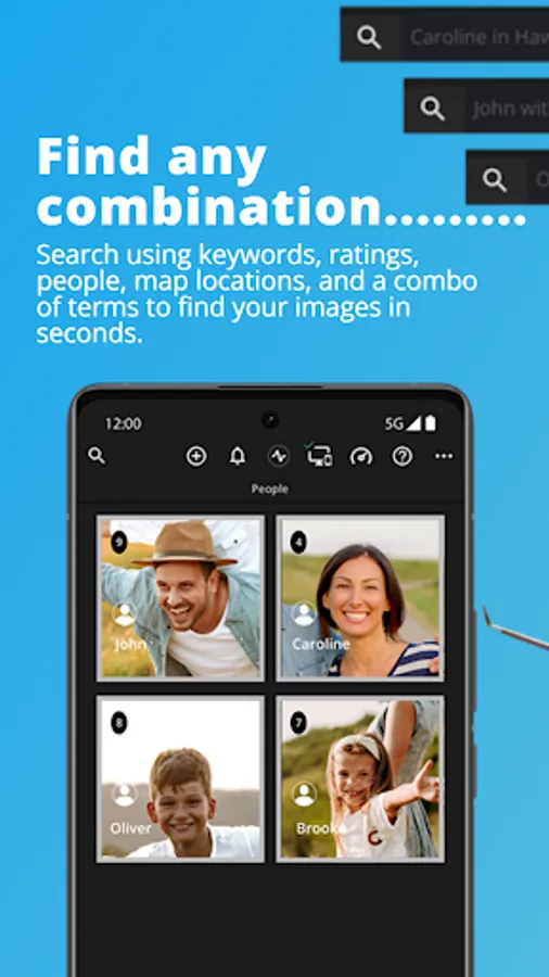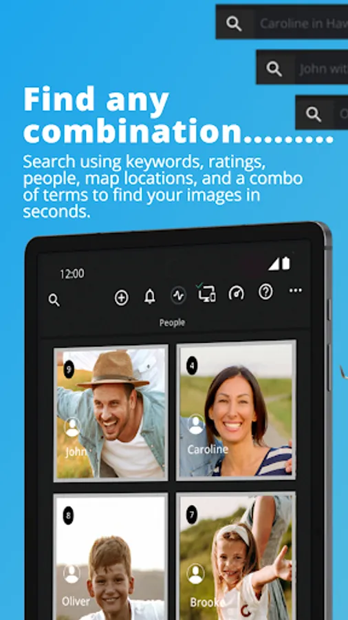AI-driven computer vision finds over 1,000 activities, objects, and properties in your images and tags them with this information. As a result, searches are much faster and far more precise - with most results in less than two seconds.