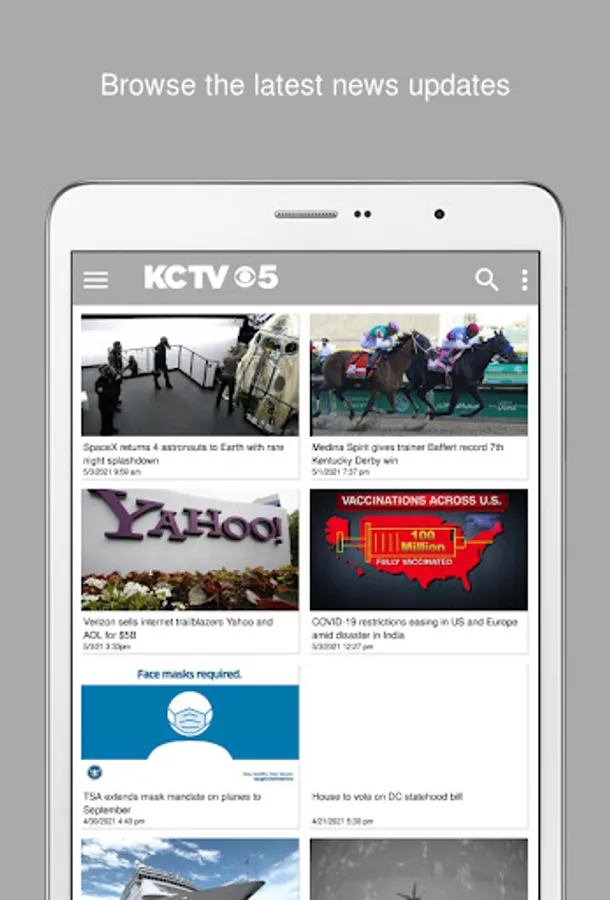 KCTV5 News Stands for You. We dig deeper, uncover the truth and tell your stories. The KCTV5 News app is your source for Kansas City’s latest news, the StormTrack5 weather forecast, the latest sports headlines from the KCTV5 Locker Room and features you can see only on 5 like Top 5 and Its Your Health, plus live newscasts from the KCTV5 News team.