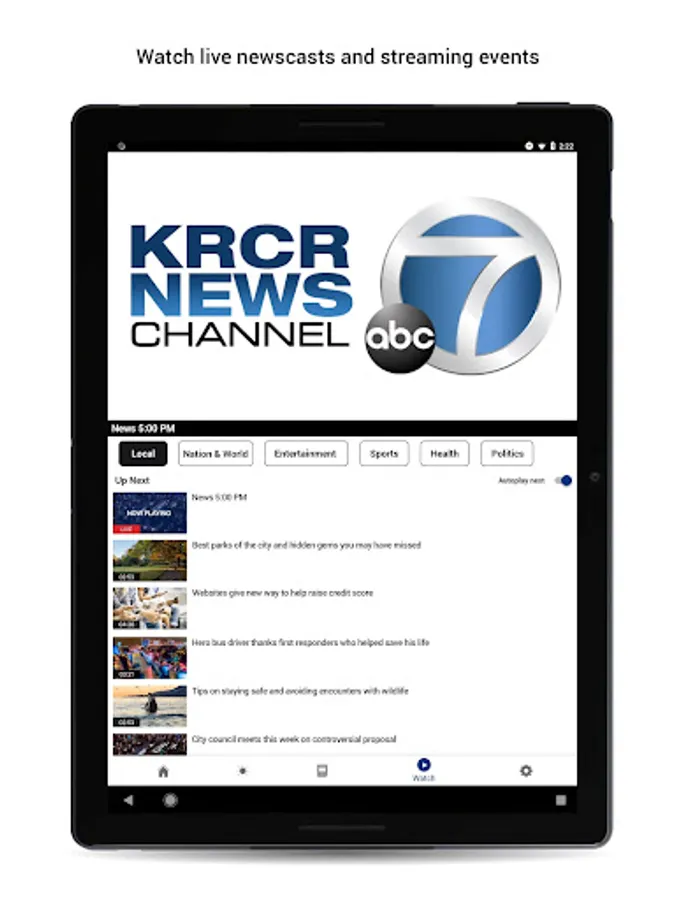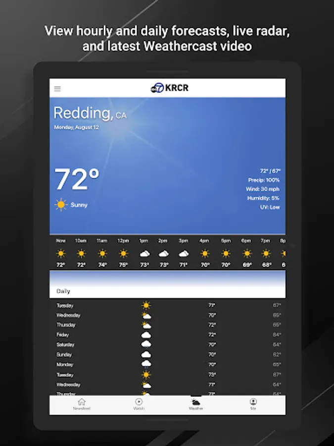 The KRCR News Channel 7 app delivers news, weather and sports in an instant. With the new and fully redesigned app you can watch live newscasts, get up-to-the minute local and national news, weather and traffic conditions and stay informed via notifications alerting you to breaking news and local events.