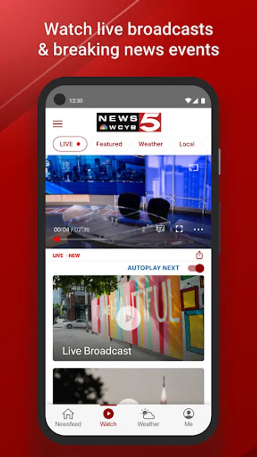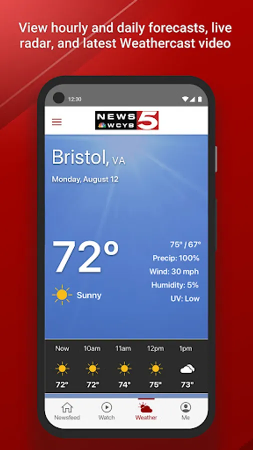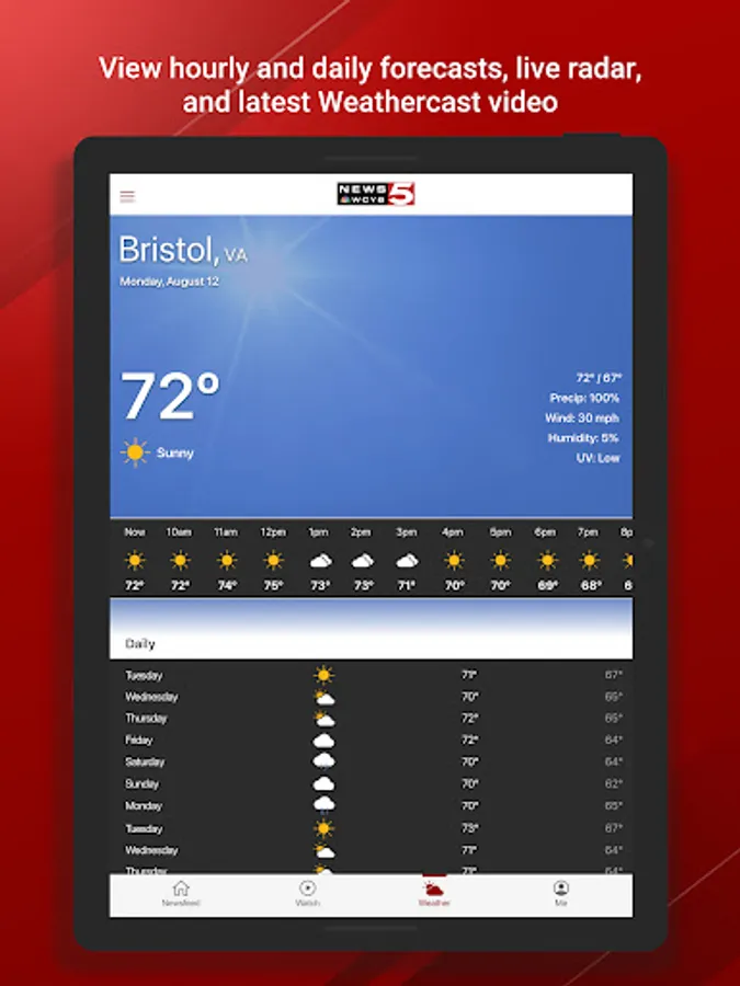 The News 5 WCYB.com Mobile app delivers news, weather and sports in an instant. With the new and fully redesigned app you can watch live newscasts, get up-to-the minute local and national news, weather and traffic conditions and stay informed via notifications alerting you to breaking news and local events.