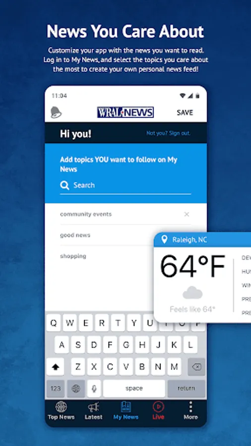 • Get the news you care about with My News. Just select your topics to create a personalized feed.