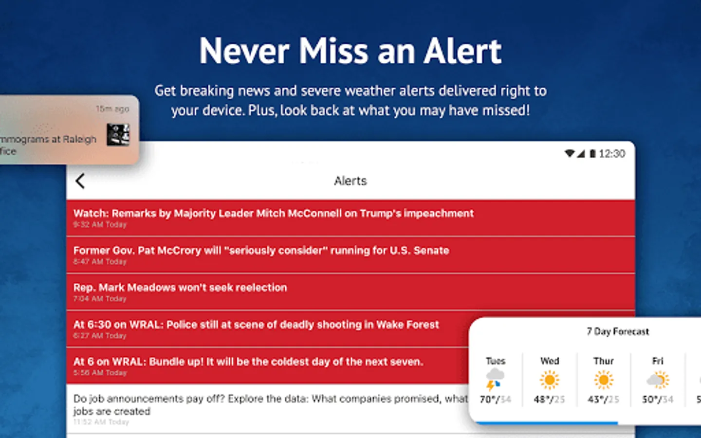The all-new WRAL News App delivers coverage you can count on in Raleigh, Durham and Fayetteville, NC. Follow breaking news from North Carolina's largest news team and most experienced severe weather team.