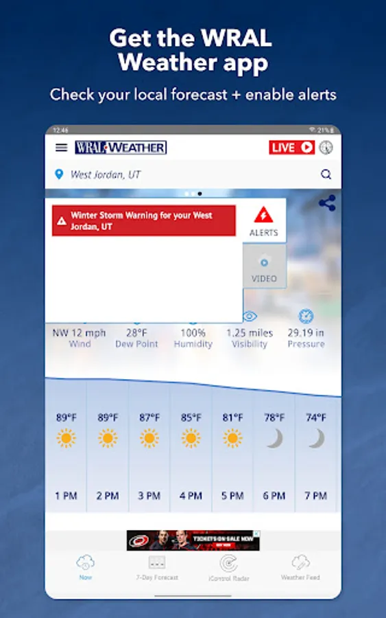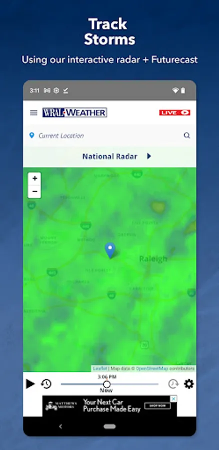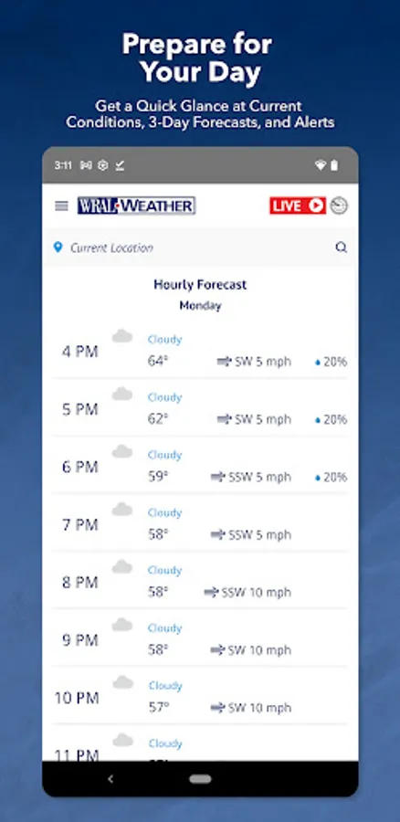 You can easily stay up to date on the weather by receiving forecast information and updates from the WRAL Severe Weather Center in Raleigh, directly through your phone or tablet. You can also find direct links to the Live Cam section of the website and see what’s happening outside right now near you. Get the latest weather forecast, keep track of the cloud cover and rainfall amounts nearby with your Futurecast, and receive severe weather alerts in your area with your exact location.