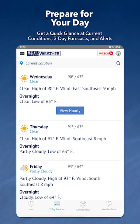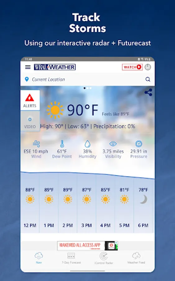 In the WRAL Weather app, you’ll find weather forecasts for Raleigh, Durham, Chapel Hill, and Eastern North Carolina. Check the Raleigh weather this week or check the weather this weekend. Plus, the app can keep up with your current location and give the most accurate real-time forecast.