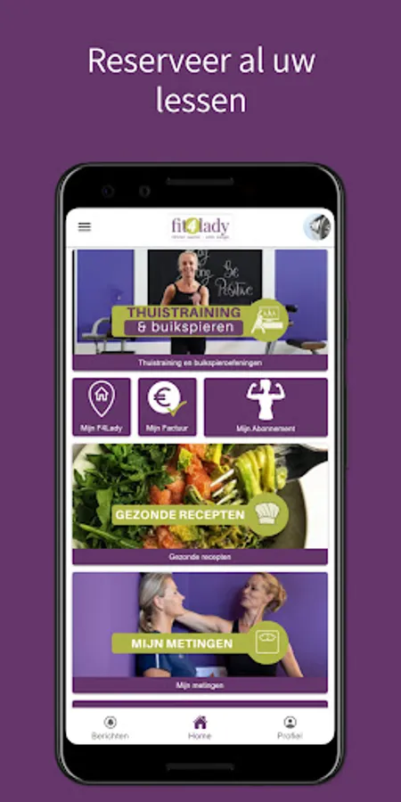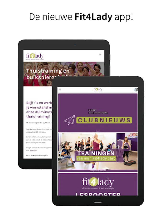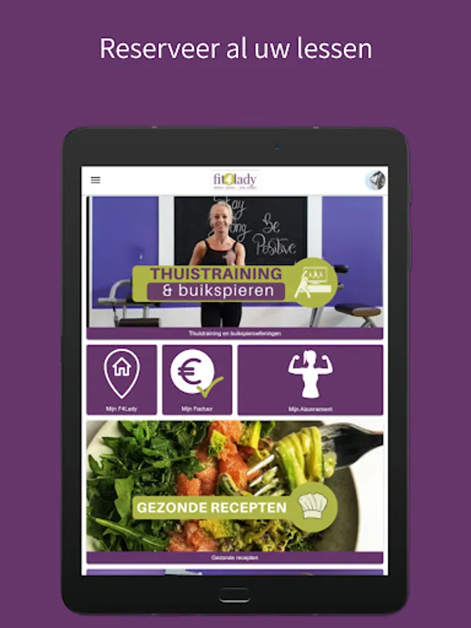 In the new Fit4Lady app you can book your lessons, follow live streams and more!