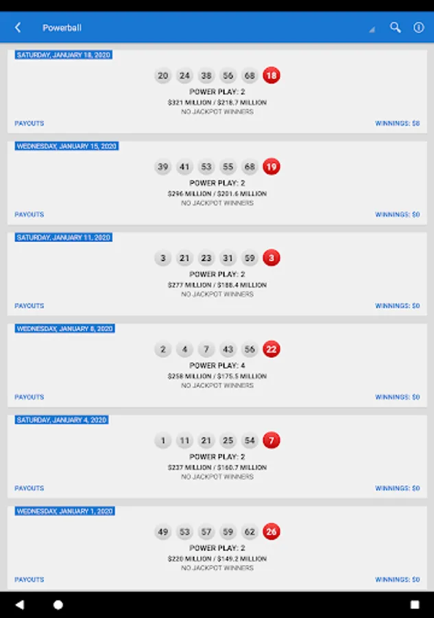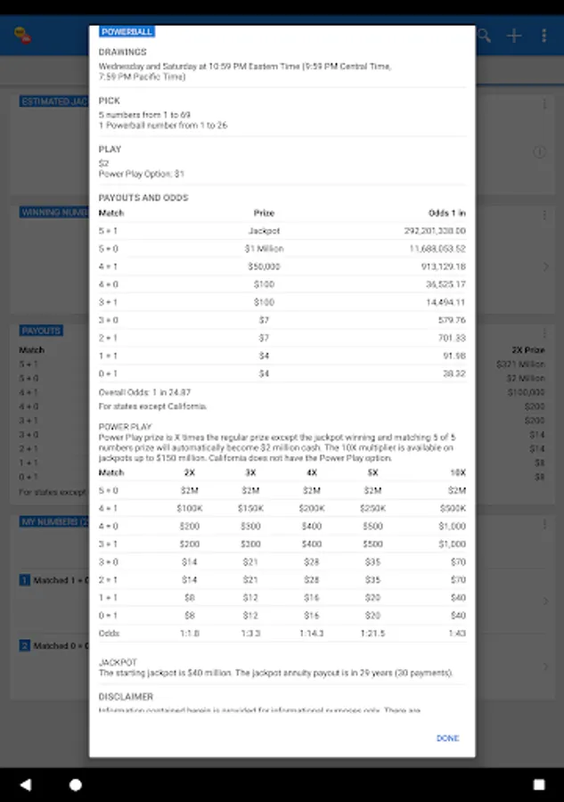 * Jackpot information and current winning numbers