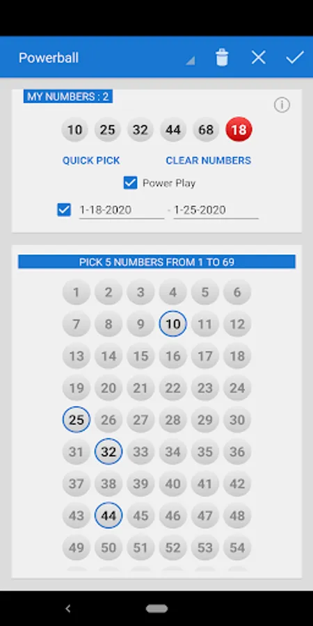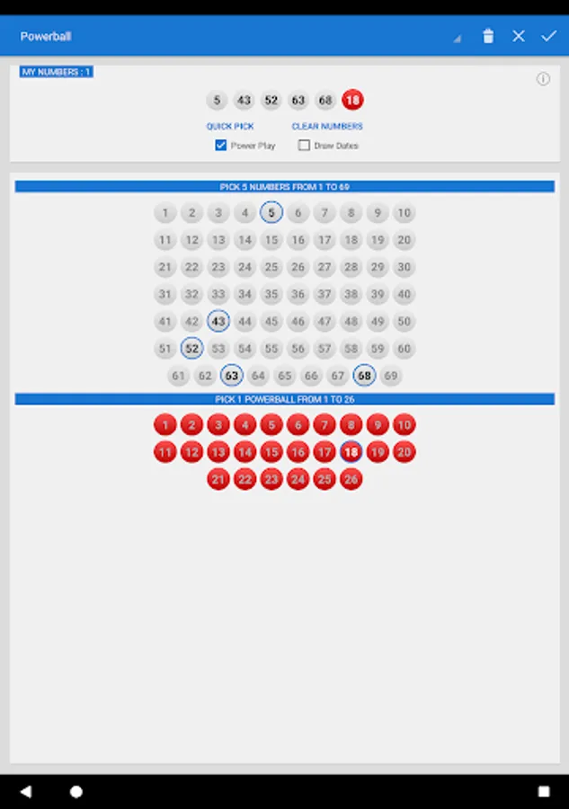 * Quick pick/number generator to pick one or all your numbers