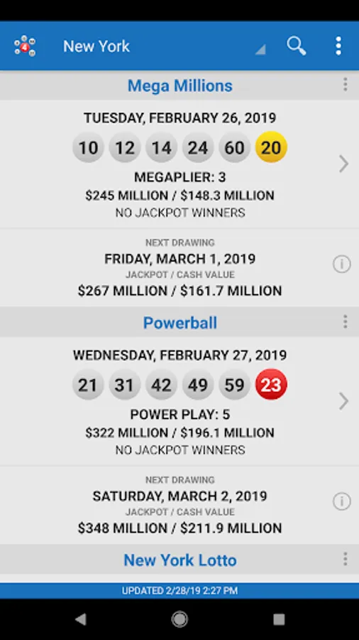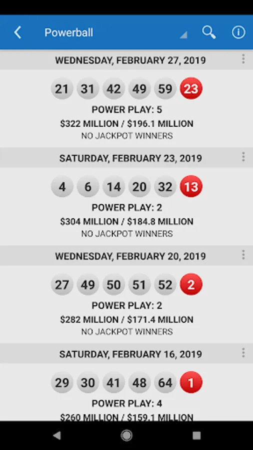 * To view drawing history, tap on lotto game's Winning Numbers section