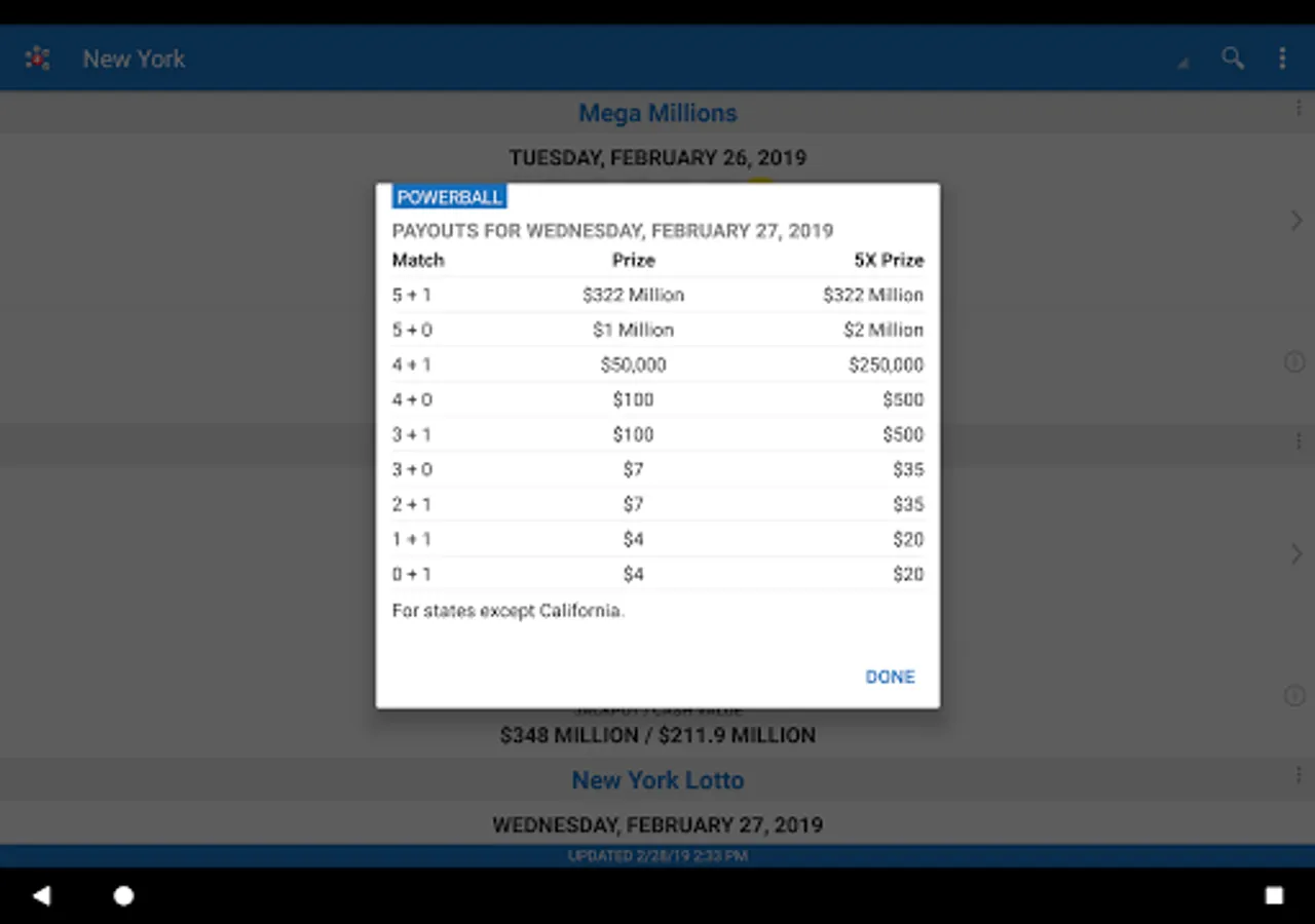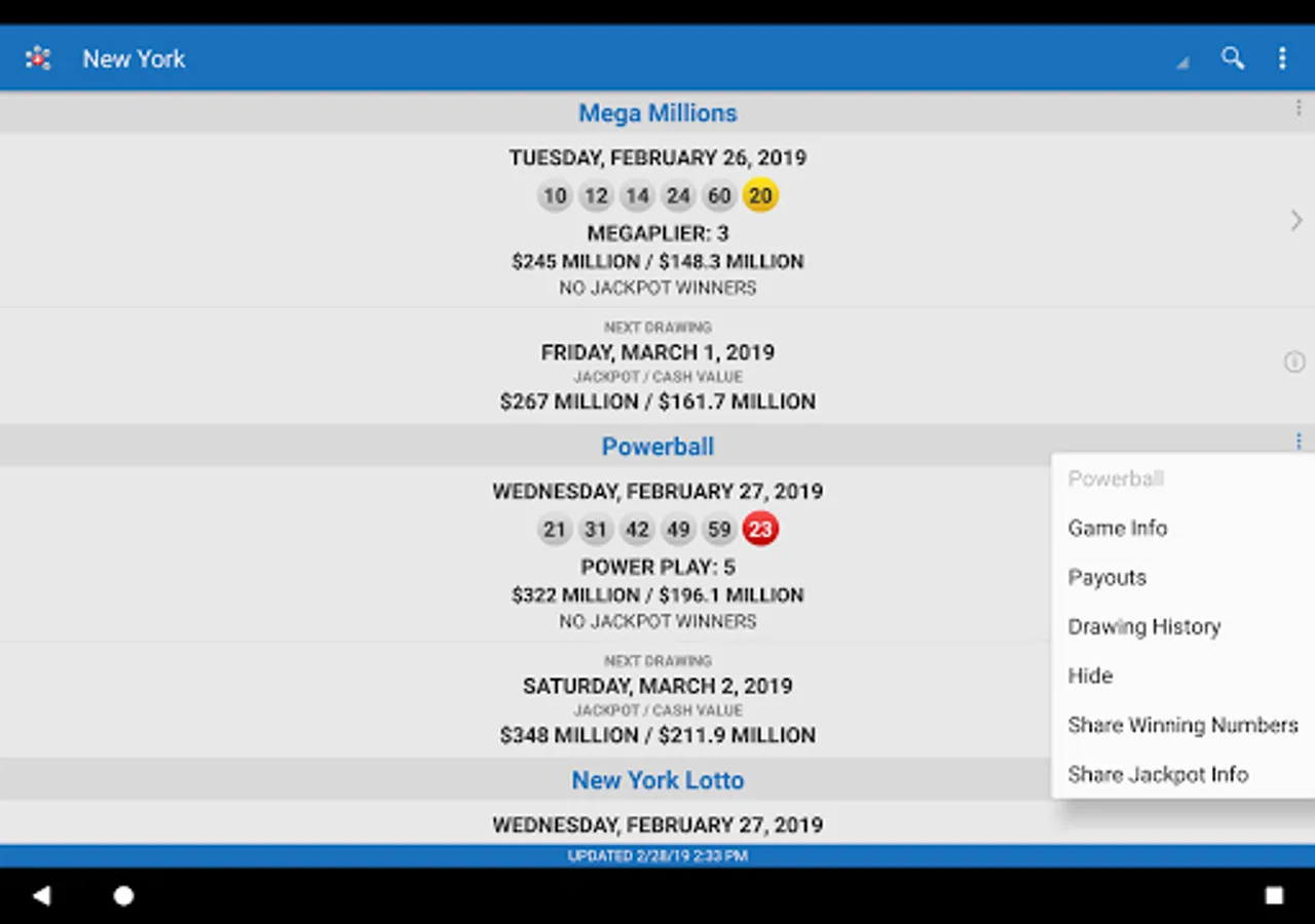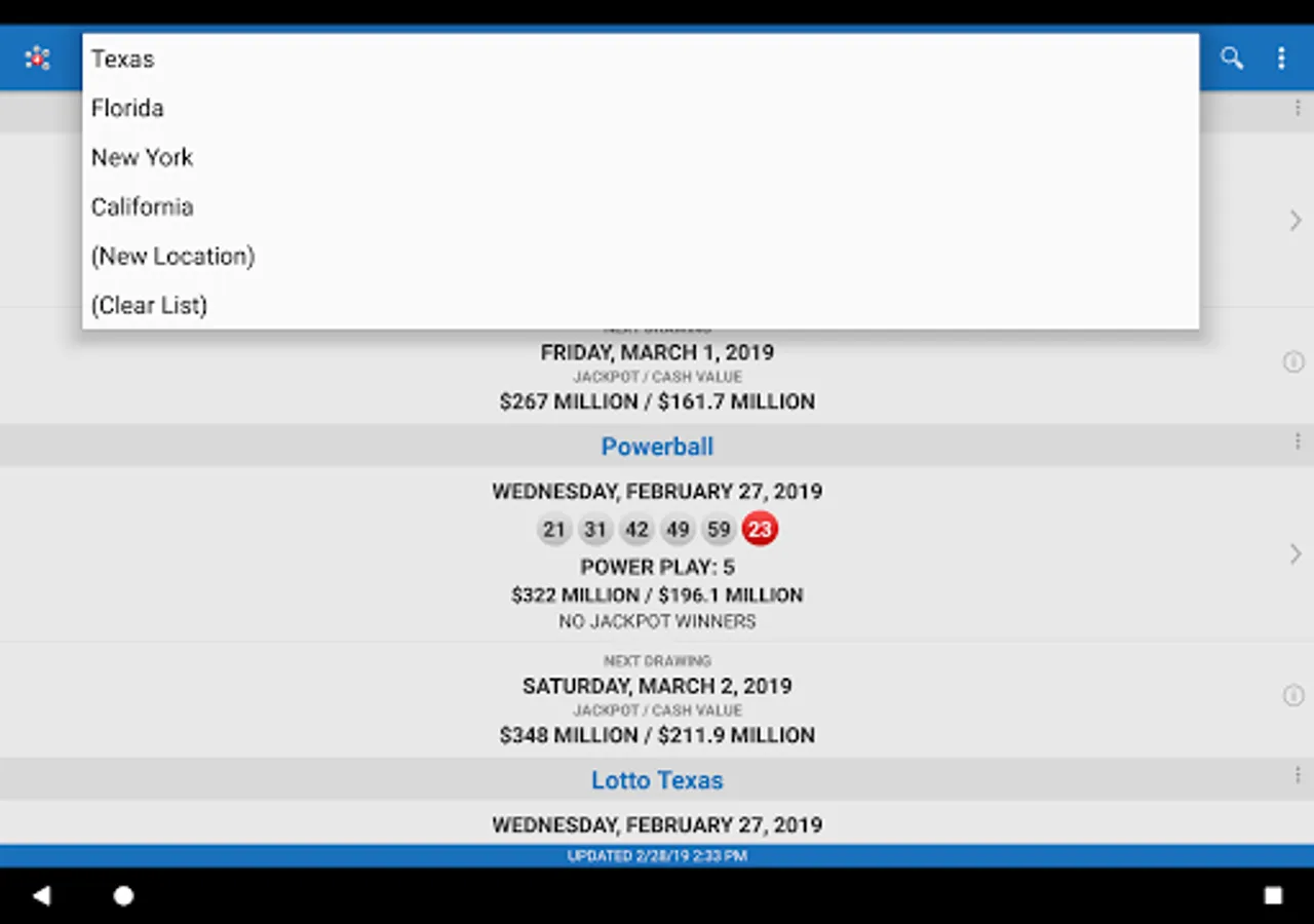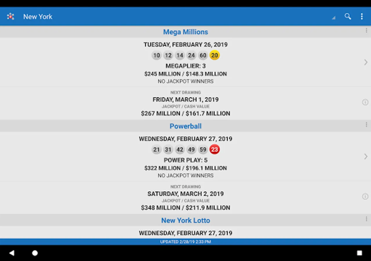 Quick and easy access to Mega Millions, Powerball and state lottery results in the US.