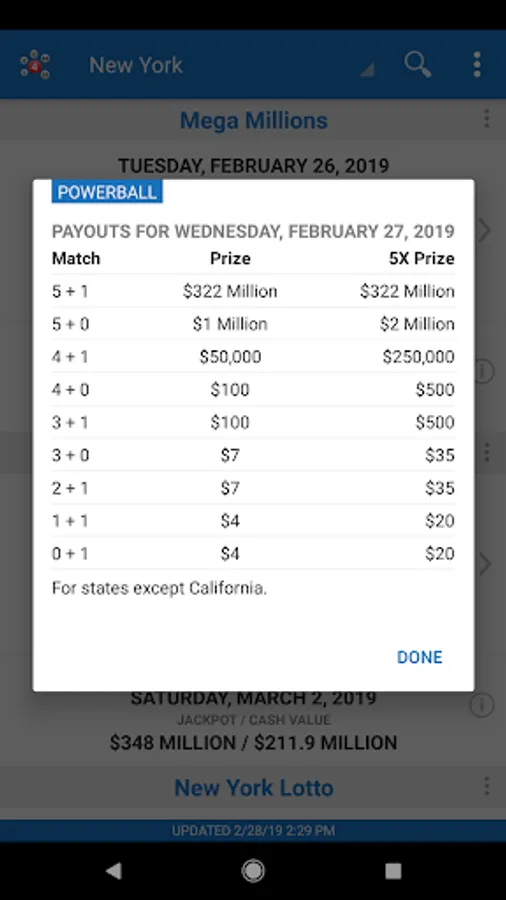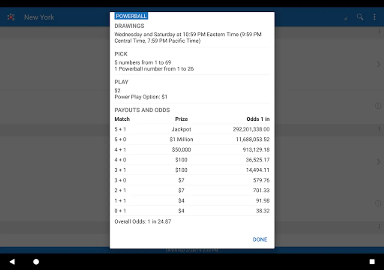 * To view payout/prize level and game information, tap on lotto game's Next Drawing section