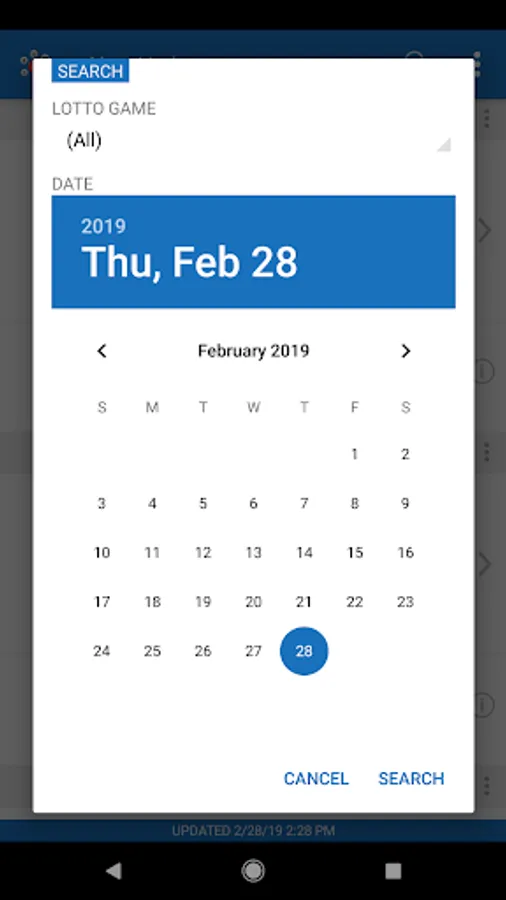 * To select/deselect lotto games from view, tap on Options Menu then select Lotto Games