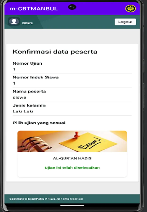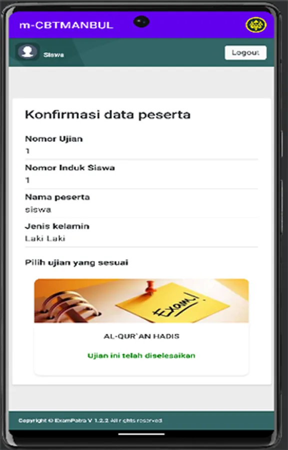 m-CBTMANBUL is an exam application for students at the Bulungan State Islamic Senior High School, North Kalimantan