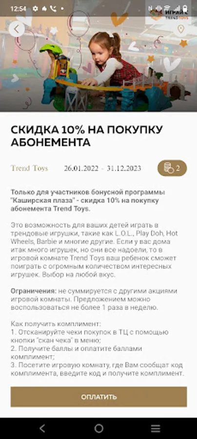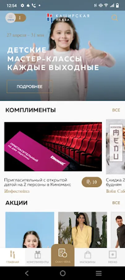 With the application of the Kashirskaya Plaza shopping center, making purchases has become even more pleasant. Buy as you used to and get compliments from shops and restaurants: