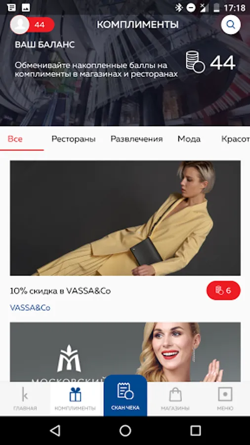 Upload receipts of purchases to the app, get points for them and exchange them for nice compliments: