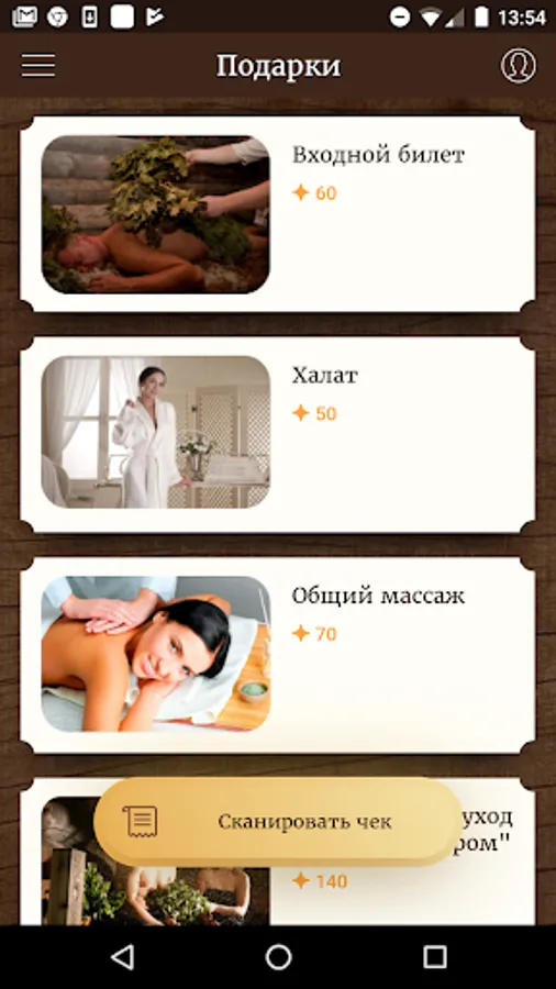 With the mobile application “Rzhevskiye Bani” it became even more pleasant to visit our complex! Make purchases, collect BONUSES and get presents: