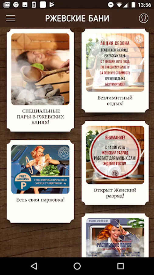 And the most interesting promotions and news. All this in the new program and the mobile application "Rzhevskie Bani".